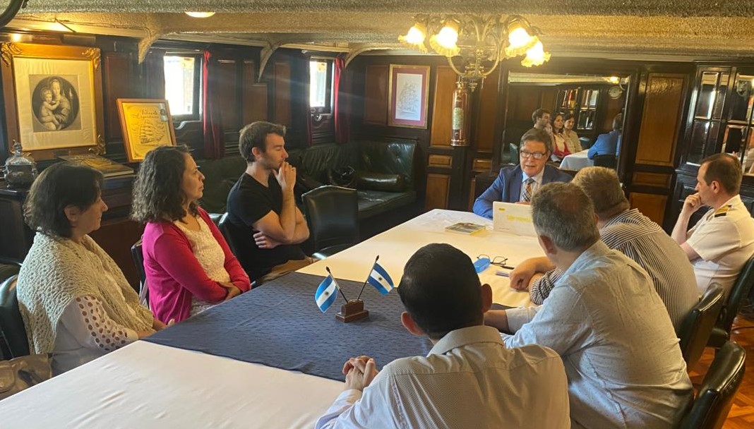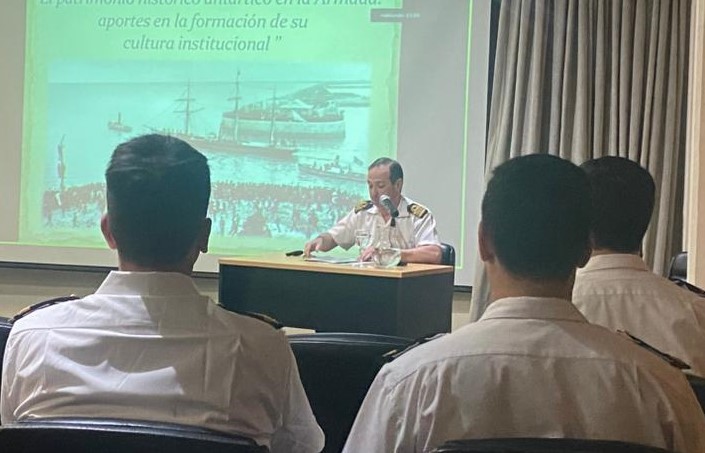 donde el Director del buque, el capitán de corbeta Sebastián Emiliano Morán, expuso sobre el patrimonio cultural